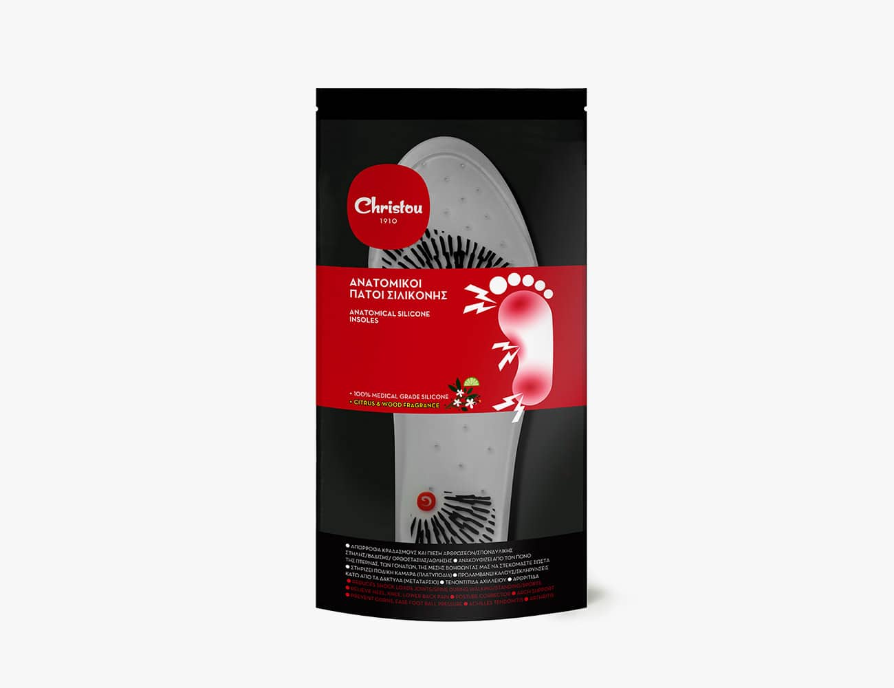Κι επειδή, όσο ιδανικό κι αν είναι το πόδι σας χρειάζεται κι αυτό την προστασία του, εμείς σας προτείνουμε να «ντύσετε» τα παπούτσια σας με τους ανατομικούς πάτους της Christou1910 με 100% καθαρή σιλικόνη ιατρικής ποιότητας. Οι υποαλλεργικοί πάτοι φοριούνται πολύ εύκολα με κάθε τύπο παπουτσιού, προσφέροντας στήριξη στα 3 βασικά σημεία του ποδιού: τη φτέρνα, την ποδική καμάρα και το μετατάρσιο. Οι πάτοι απορροφούν τους κραδασμούς και την αυξημένη πίεση απ’ όλο το βάρος του σώματος στα πόδια, προλαμβάνοντας κάλους, σκληρύνσεις και κρατώντας σας πιο άνετες και ξεκούραστες ακόμη και μετά από ώρες ορθοστασίας.