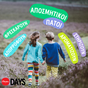 Οι Αρωματικοί πάτοι για παιδιά DAYS FRESH είναι ένα καινοτόμο προϊόν που έχει αναπτυχθεί σε συνεργασία με το Τμήμα Χημείας του Μετσόβιου Πολυτεχνείου και ομάδα βοτανολόγων για να προσφέρουν ,  στα παιδικά ποδαράκια μια παρατεταμένη αίσθηση φρεσκάδας και υγιεινής στο εσωτερικό των παπουτσιών.