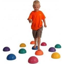 kid balancing on tactile balls